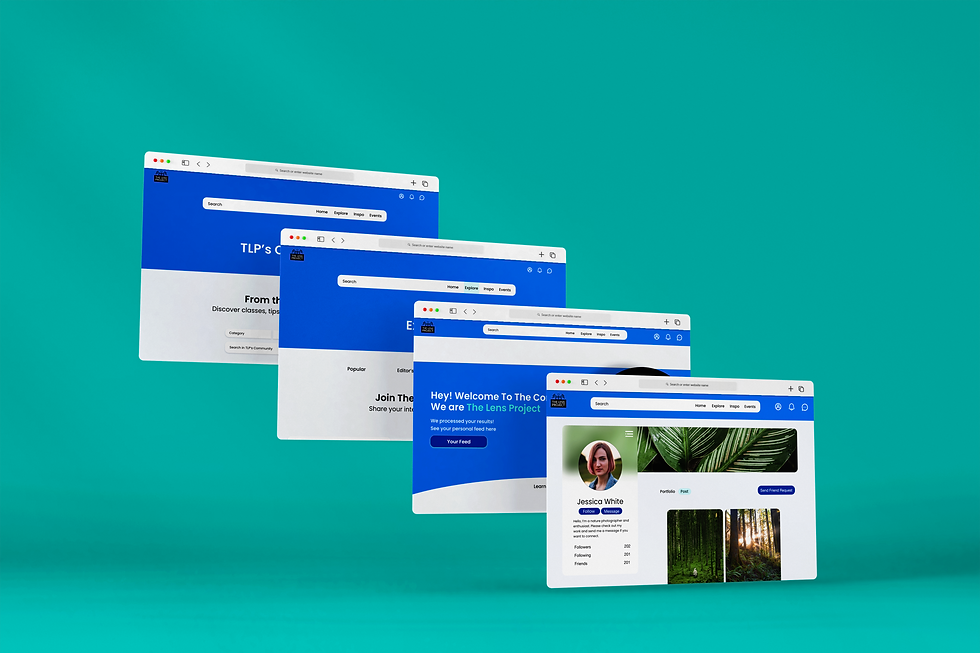 The Lens Project is a photography social networking website that strives to optimize the user experience with straightforward, easy, and accessible website navigation, personalized generated feeds created by a photography-based questionnaire to adapt the web experience to the user's experience level, and comfortability, Inspiration, Group, and Community pages to encourage regular interaction with other users while aiding novice photographers in their journey, and additional chat prompts that helps users complete their task in networking and growing connections in the photography community. The Lens Project targets users who have different experience levels in photography and want a platform to easily network, users who view photography as a hobby and want easy access to resources, inspiration, and ways to grow their hobby, and users who have no experience or knowledge in the field but are still interested in exploring the site. Through these features, different types of users can easily navigate and have a positive experience regardless of their experience level.