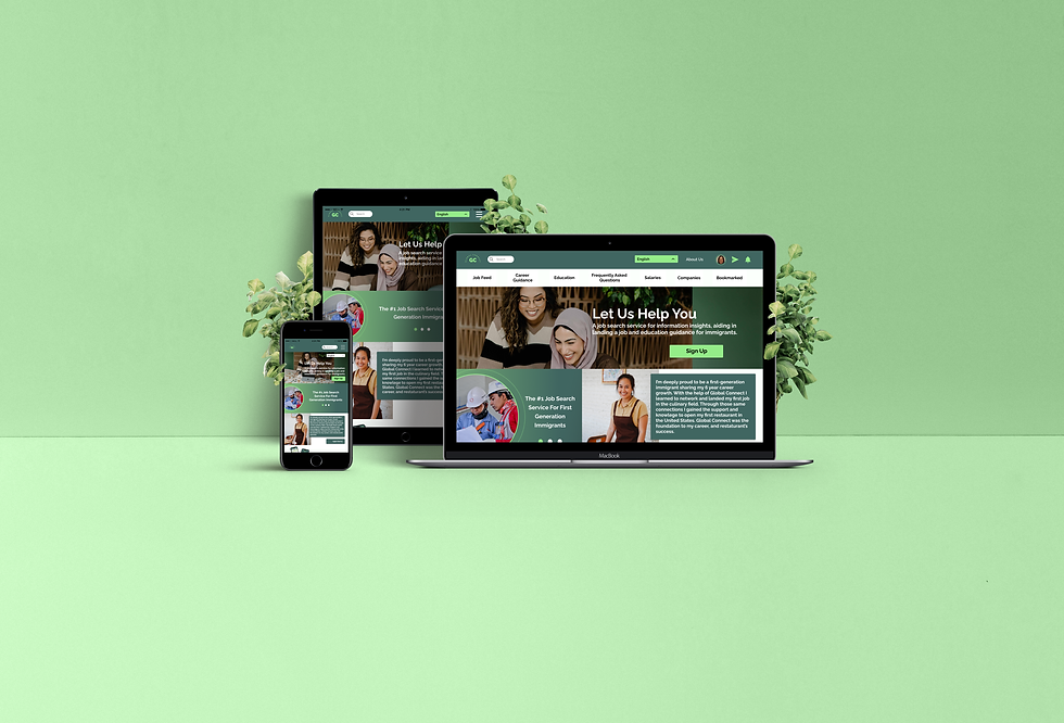 Global Connect is a project I have great pride in as it confronts a social issue that I believe is impactful in this world, helping first-generation immigrants in the search for their careers. Social good projects not only center the user as the focus of the design but stress the impactful importance of having a sufficient interface to aid the user in completing their journey and making their life easier. This was a professional concept that had positive responses from my participants from the impressive navigation, impactful features, and accessible driven layouts. Designing a responsive website showed how differently individuals interact with different devices and how strongly their experience can be impacted. Moving forward my next step is to further my research study with a wider variety of participants and consider other possibilities or difficulties that could've been looked over. I'm proud of making impactful work and will continue to work on it.